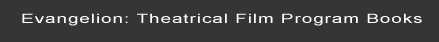 During the initial theatrical run of the Neon Genesis Evangelion films, theatrical program books were sold in the theaters screening the films. This is common practice in Japan. The Evangelion program books contain glossaries, timelines, interviews, production notes, plot notes, and more. These books are especially interesting because they were specifically approved by Studio Gainax and the producers of Evangelion. Thus they offer a rare look at Evangelion from the creators themselves. They are canon and official. |